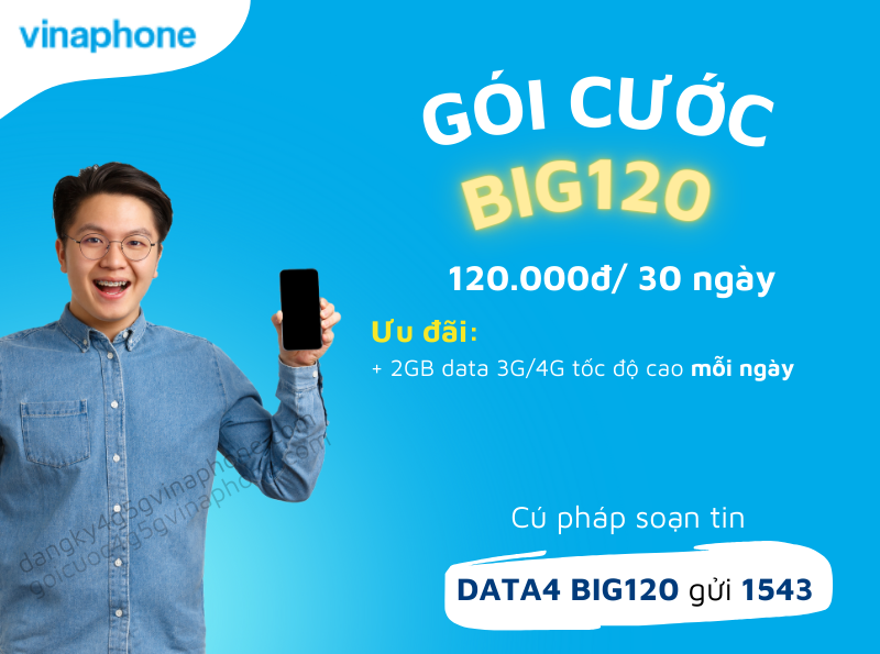 Các bạn thân mến. Trên đây chúng tôi đã chia sẻ cùng bạn thông tin gói BIG120 mời bạn đăng ký sử dụng để thỏa mái truy cập mạng 4g tốc độ cao của Vinaphone trên di động của bạn cả tháng.